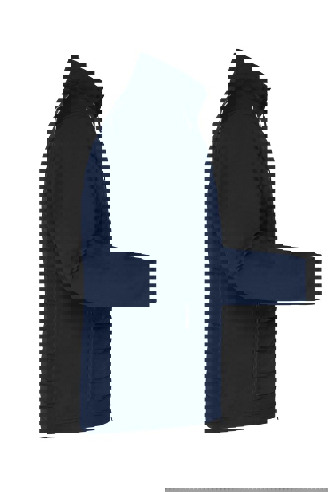 Pflegeleichtes 2-Lagen Softshellmaterial kombiniert mit gesteppten Einsätzen im Vorder- und Rückenteil