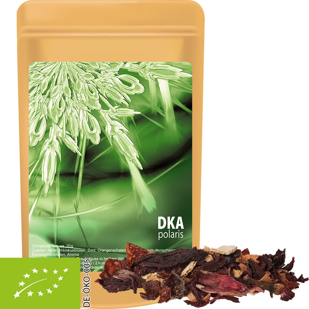 Zutaten Bio Weihnachts Früchtetee: Hagebutten*, Hibiskus*, Apfel*, Orangenschalen*, Zimt*, Nelken*; *aus kontrolliert biologischem Anbau.