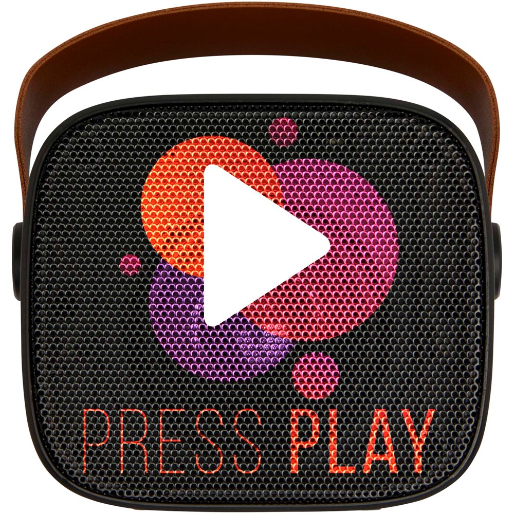 Der kabellose Diya Lautsprecher besteht aus recyceltem Kunststoff und ist mit einer Schlaufe aus PU-Leder ausgestattet, das den Transport erleichtert. Er sorgt für einen kräftigen 3-Watt-Sound und unterstützt die MP3-Wiedergabe über Micro-SD. Genießen Sie nahtlose Verbindung mit einer Line-In-Option und laden Sie ihn mühelos über den Typ-C-Ladeanschluss auf. Die Wiedergabezeit bei maximaler Lautstärke beträgt ca. 3 Stunden und der Lautsprecher kann in ca. 2 Stunden von 0 auf 100 % aufgeladen werden.