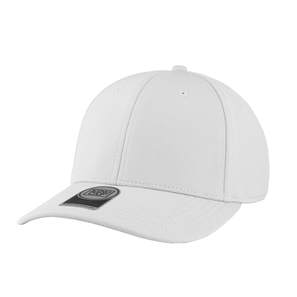 6 Panel Cap mit Frontfütterung. Medium profile. Klettverschluss mit Kunststoffschnalle und kleinem Gummiband. Hergestellt aus 97% recyceltem Ottoman und 3% Spandex.