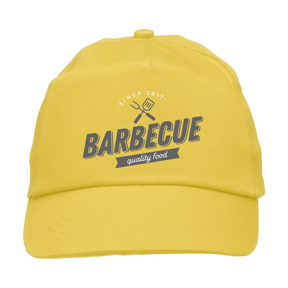Baseballkappe aus 100% Baumwolle mit vorgeformtem Schirm und verstellbarem Verschluss.