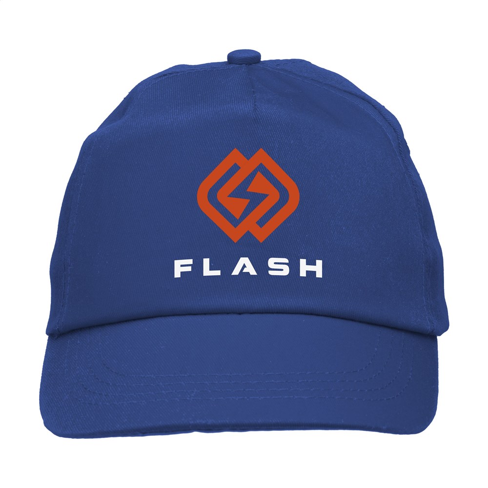 Baseballkappe aus 100% Baumwolle mit vorgeformtem Schirm und verstellbarem Verschluss.