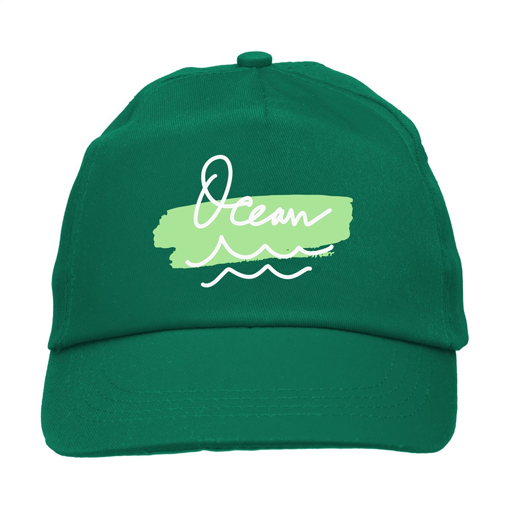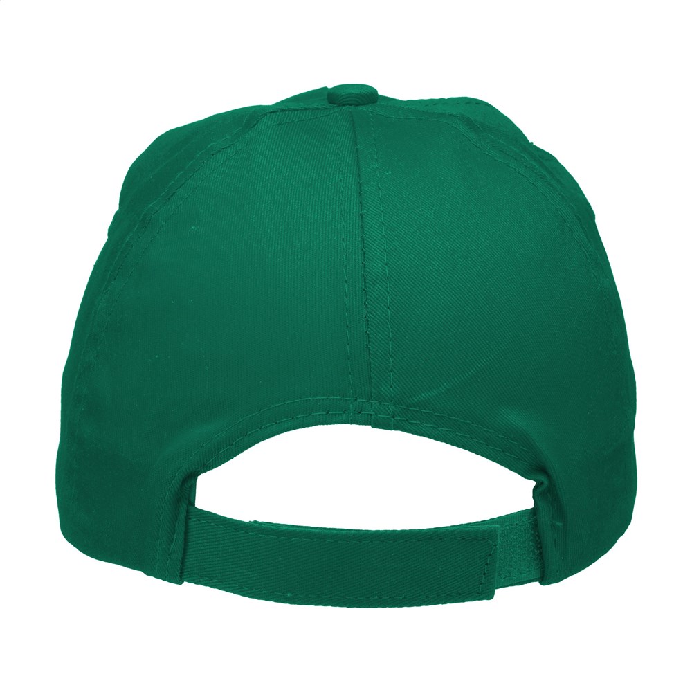 Baseballkappe aus 100% Baumwolle mit vorgeformtem Schirm und verstellbarem Verschluss.