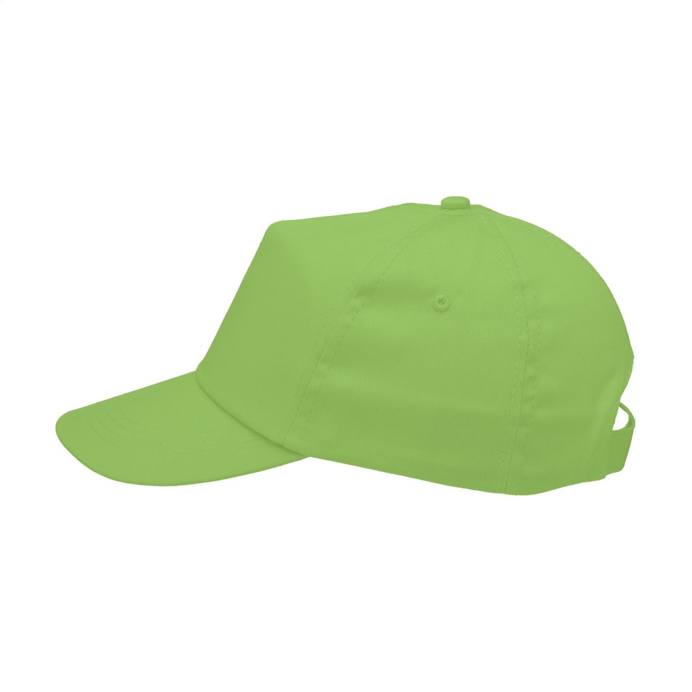 Baseballkappe aus 100% Baumwolle mit vorgeformtem Schirm und verstellbarem Verschluss.