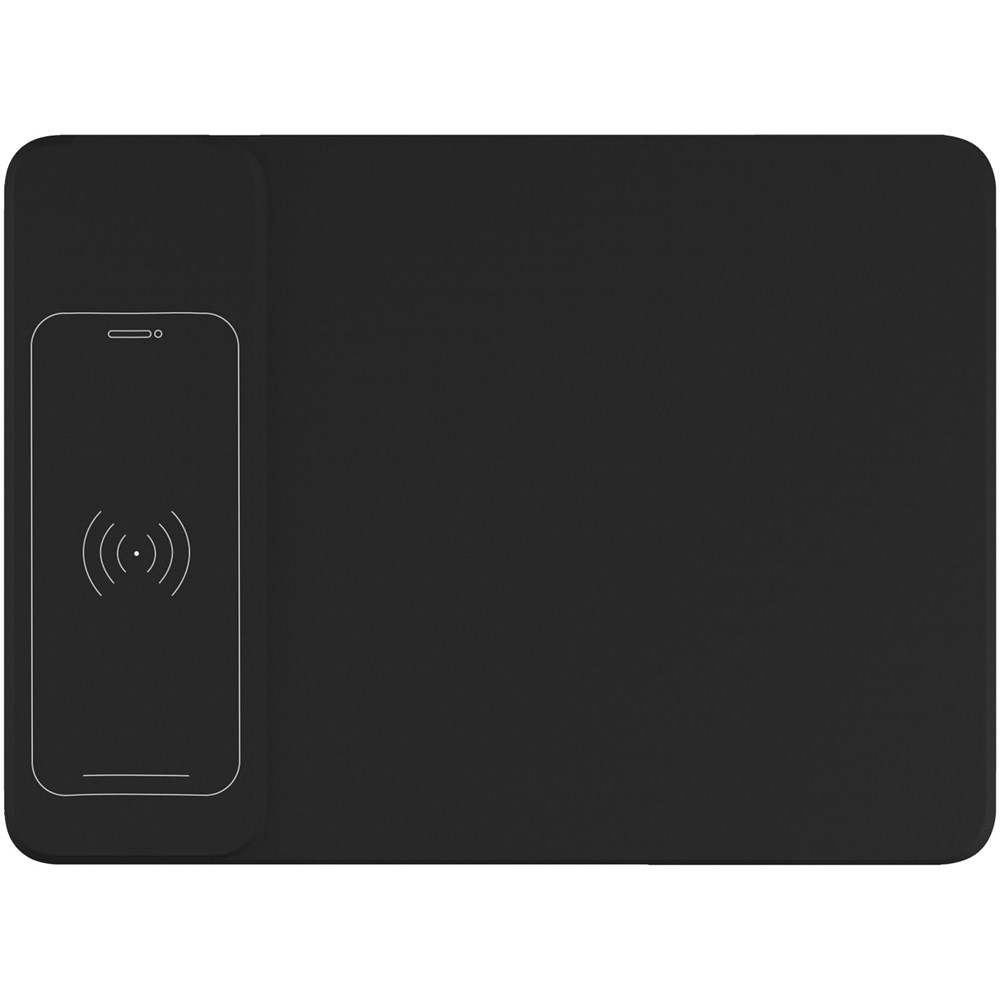 Kabelloses Mauspad mit beleuchtetem Logo (10 W). USB-Eingang/-Ausgang: 5V - 2A. 1 Meter USB-Kabel im Lieferumfang enthalten. Die Verpackung besteht aus recyceltem Papier.
