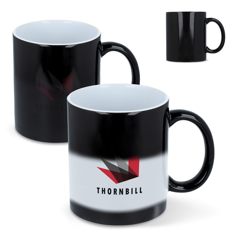 Erleben Sie die Magie des Oslo Farbwechselbechers. Dieser Becher mit einem Fassungsvermögen von 300 ml ändert seine Farbe und enthüllt den darunter liegenden Aufdruck, wenn er mit heißer Flüssigkeit gefüllt wird.