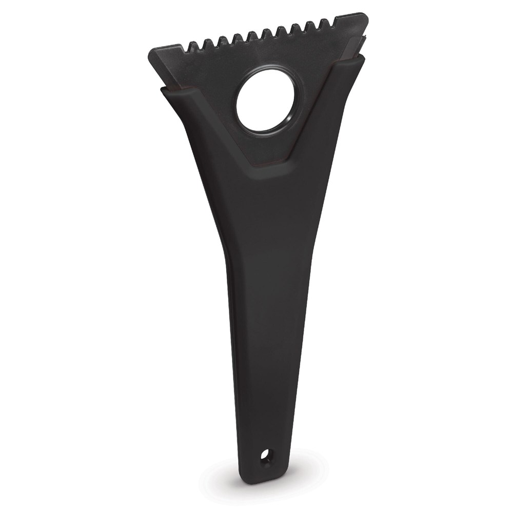 Handlicher Eiskratzer mit austauschbarem Dreieck zum Entfernen von Schnee, Eis und Kondenswasser. Der Griff hat eine große Druckfläche für ein Logo.