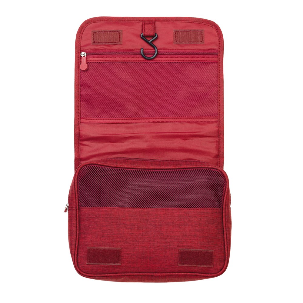 Praktischer Kulturbeutel mit verschiedenen Fächern. Der Haken ermöglicht es, ihn aufzuhängen.