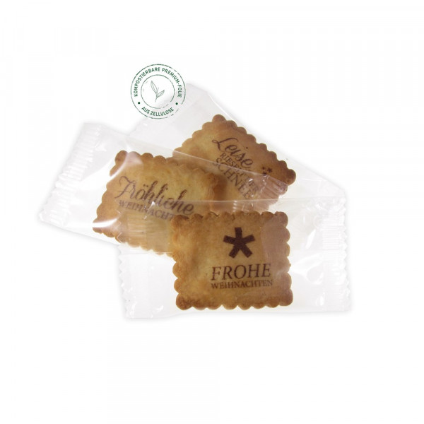 Sie Ihre Weihnachts- bzw. Adventsgrüße doch als leckeren Keks – dessen zartbuttriger Geschmack mit köstlicher Vanillenote lässt Ihre Botschaft buchstäblich