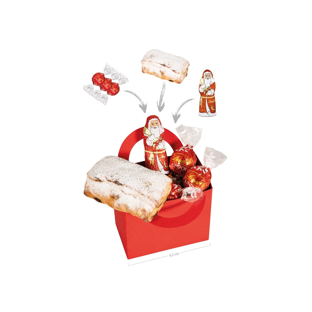 1 schicke Weihnachtstüte Rot gefüllt mit: 1 Gourmet-Christstollen 80 g, 3 zartschmelzende Lindt... mehr