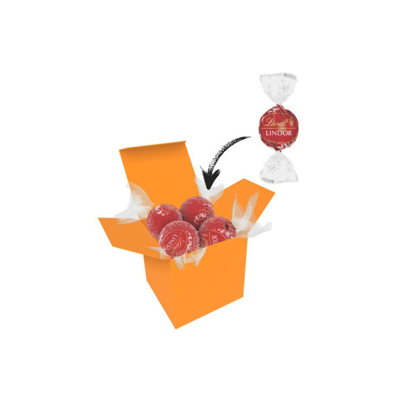 1 ColorBox (Farbe nach Wahl) gefüllt mit 4 Lindt Lindor Kugeln (Sorte nach Wahl) je 12,5 g. • Quadratisch, flexibel und nachhaltig: die ColorBox ist ein Naturprodukt "MADE IN GERMANY" welches aus 100% Recyclingpapier hergestellt wird und in 13 leuchtenden Farben erhältlich ist. Die ColorBox kann auf Wunsch mit einem 4c Aufkleber oder 1c Druck individualisiert werden, weitere mögliche Werbeanbringungen sind eine Banderole 4c um die Box herum und ab 3000 Stück ein All-Over Druck 4c.
