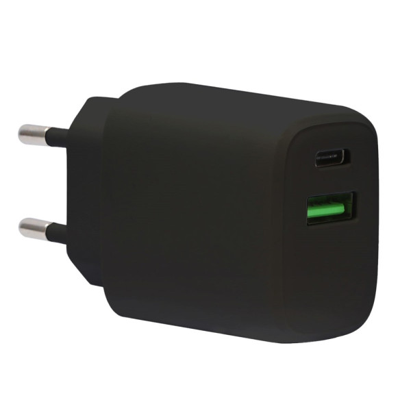 Adapter mit Power Delivery Fastcharge TÜV GS Zertifkzierte Qualität USB C und USB A 3.0 Input 100-240 V 50/60 Hz 0,5 A PD Output: 5 V 3 A = 15 Watt 9 V, 2,22 A = 20 Watt 12 V, 1,67 A = 20 Watt USB Output 5 V 3 A = 15 Watt 9 V, 2 A = 20 Watt 12 V, 1,5 A = 20 Watt Output gesamt 5V = 3A Einzeln verpackt im weißen Displaykarton