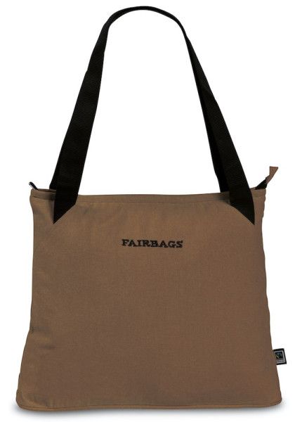 Einfarbiger Damenshopper aus Fairtrade Baumwolle mit Reißverschluss und schwarzen Henkeln. Fablich passendes Innenfutter mit separatem Reißverschlussfach und eingenähtem Einkaufschip.