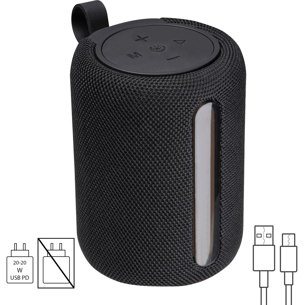 Unser Bluetooth-Lautsprecher (Version 5.3) überzeugt mit seiner runden Form, modernem Design und vielseitigen Funktionen. Mit einer Akkuleistung von 800 mAh (5V) bietet er langen Musikgenuss, während das RGB-LED-Licht für eine stimmungsvolle Atmosphäre sorgt. Der USB/Type-C-Anschluss, der SD-Kartenschlitz und die praktische Trageschlaufe machen den Lautsprecher zu einem idealen Begleiter für unterwegs. Ihre Werbung wird präzise auf die gummierte Oberfläche graviert, was eine elegante und langlebige Markenpräsentation ermöglicht.