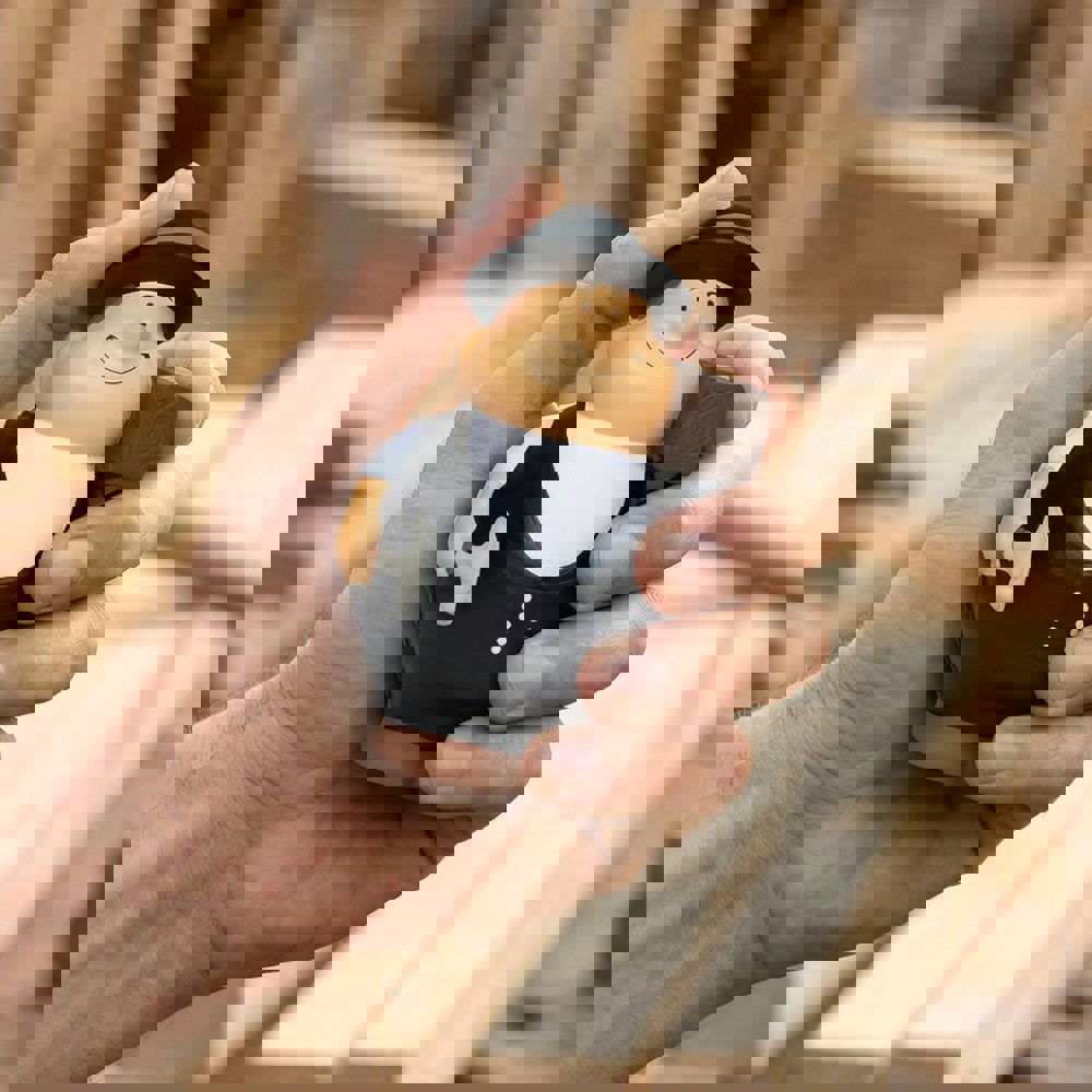 Hoch auf dem Dach hält der Zimmermann Bert® mal bei der Arbeit inne und lässt seinen Blick in die Ferne schweifen. Das bringt Ruhe und Entspannung, so dass er anschließend wieder tüchtig anpacken kann. Tun Sie es ihm gleich. Zwischendurch eine Pause einlegen und den SQUEEZIES® Zimmermann Bert® zum Stressabbau einfach "zusammenknautschen". Durch die Materialbeschaffenheit nimmt das Produkt die Ursprungsform wieder ein.