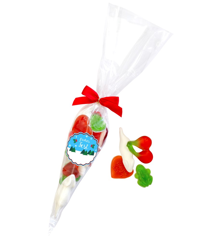 Kleine Tütchen als persönliches Geschenk. Handbefüllt mit einer Mischung der leckersten Weihnachtssüßigkeiten & mit einer handgebundenen, roten Schleife veredelt.