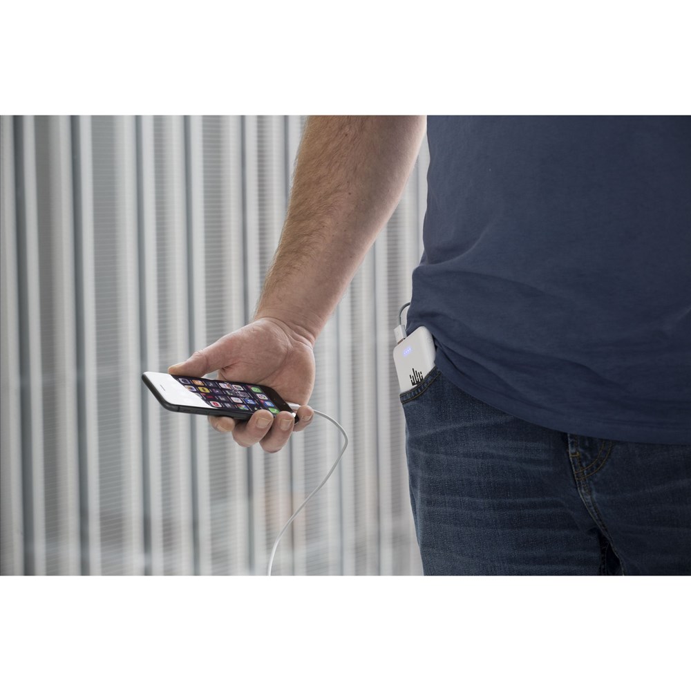 Kleine, leichte und sehr leistungsstarke Powerbank mit eingebauter Lithium-Polymer-Batterie (5000 mAh). Das Gehäuse ist aus 100% RCS-zertifiziertem recyceltem ABS gefertigt. Dieses Kraftpaket passt problemlos in Ihre Tasche, sodass Sie es bequem überall hin mitnehmen können. Eingang 5V/2A. Dualer Ausgang: 2 x 5V/2A. Inklusive USB-C-Ladekabel und Gebrauchsanweisung. RCS-zertifiziert. Gesamtes recyceltes Material: 45%. Verpackt pro Stück.