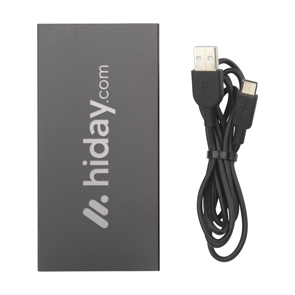 Leistungsstarke Powerbank mit integriertem Lithium-Polymer-Akku (5000 mAh). Das Gehäuse ist aus 100% GRS-zertifiziertem, recyceltem Aluminium gefertigt. Dieses Kraftpaket passt mühelos in Ihre Hosentasche, sodass Sie es bequem überallhin mitnehmen können. Eingang 5 V/2,4 A (Typ-C) Ausgang: 5V/2,4A Dual-USB. Mit Kontrollleuchten. Inklusive USB-C-Ladekabel und Gebrauchsanweisung. Gesamtes recyceltes Material: 36%. Durch die Verwendung von recyceltem Aluminium werden bei der Herstellung dieses Produkts weniger neue Rohstoffe verwendet. Das bedeutet weniger Energieverbrauch und weniger Wasserverbrauch. Pro Stück in einer Verpackung.