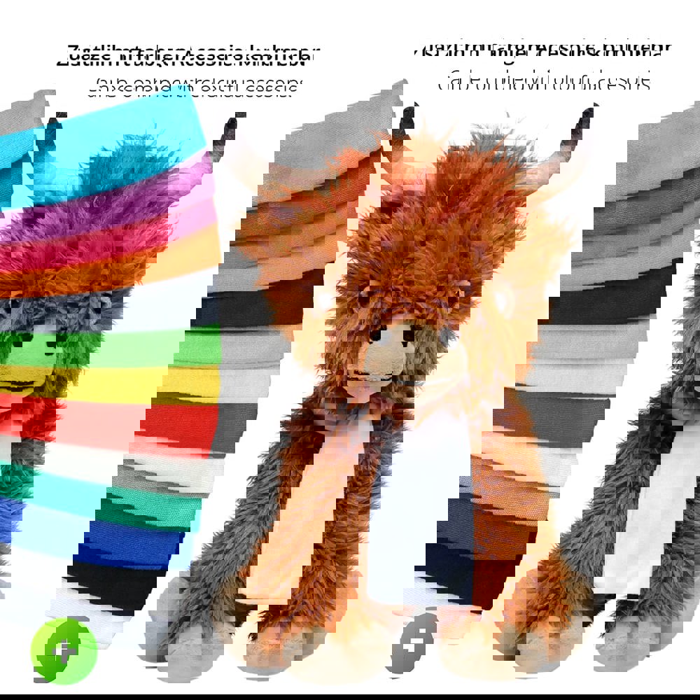 Mit seinem zotteligen Fell, den markanten Hörnern und dem sanften Blick erobert das schottische Hochlandrind Bobby im Handumdrehen jedes Herz. Das flauschige Kuscheltier bringt nicht nur ein Stück Natur ins Wohnzimmer, sondern ist auch ein echtes Statement für Charakter und Charme. Ideal als Markenbotschafter geeignet, bietet es vielfältige Möglichkeiten zur Individualisierung: Ob mit Logo oder Slogan auf der Werbefahne oder einem passenden Accessoire – das Hochlandrind Bobby macht Eindruck und bleibt in Erinnerung. Ein ideales Geschenk mit hohem Sympathiewert – für Kunden, Partner oder als kreativer Werbeartikel mit besonderem Flair.