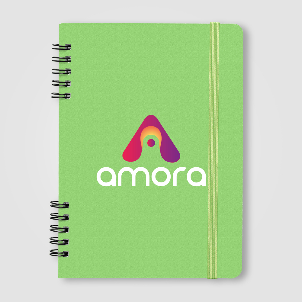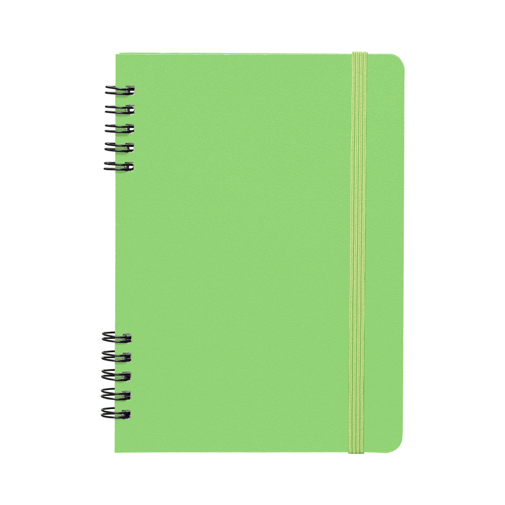 **Demnächst verfügbar – Mitte April** Wir präsentieren Ihnen das Jora Notizbuch, eine stilvolle Wahl für Ihre Notizen. Dieses Notizbuch im A5-Format verfügt über einen strapazierfähigen Einband aus Polyurethan und wird durch eine robuste schwarze Metallspirale zusammengehalten. Das einzigartige Spiralendesign ist in zwei Teile unterteilt, und dank seiner Größe können Sie einen Kugelschreiber bequem in der Bindung verstauen. Das Notizbuch enthält 80 Blatt 80 g/m² FSC®-zertifiziertes liniertes weißes Papier, wodurch sichergestellt wird, dass jede Seite eine verantwortungsvolle Forstwirtschaft unterstützt. Ein farblich passender Gummibandverschluss sorgt dafür, dass das Notizbuch unterwegs sicher verschlossen bleibt, was es zu einer funktionalen und bewussten Wahl macht.