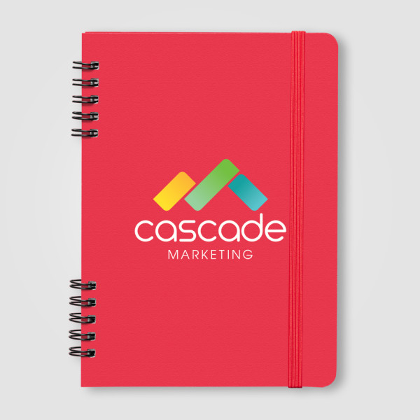 **Demnächst verfügbar – Mitte April** Wir präsentieren Ihnen das Jora Notizbuch, eine stilvolle Wahl für Ihre Notizen. Dieses Notizbuch im A5-Format verfügt über einen strapazierfähigen Einband aus Polyurethan und wird durch eine robuste schwarze Metallspirale zusammengehalten. Das einzigartige Spiralendesign ist in zwei Teile unterteilt, und dank seiner Größe können Sie einen Kugelschreiber bequem in der Bindung verstauen. Das Notizbuch enthält 80 Blatt 80 g/m² FSC®-zertifiziertes liniertes weißes Papier, wodurch sichergestellt wird, dass jede Seite eine verantwortungsvolle Forstwirtschaft unterstützt. Ein farblich passender Gummibandverschluss sorgt dafür, dass das Notizbuch unterwegs sicher verschlossen bleibt, was es zu einer funktionalen und bewussten Wahl macht.