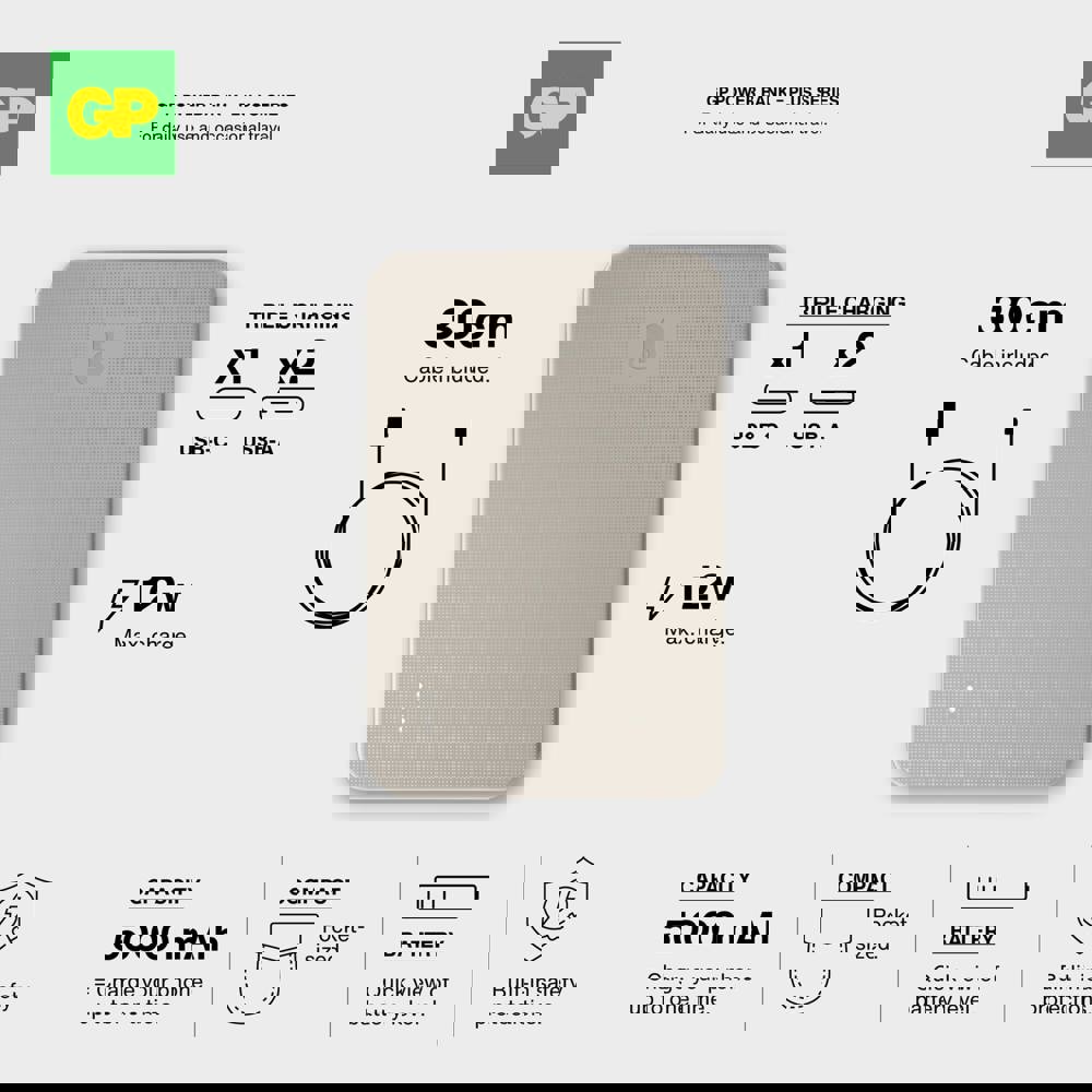Die GP PowerBank kombiniert eine zuverlässige Stromversorgung mit einem eleganten Design. Mit einer Kapazität von 5000 mAh ermöglicht sie das gleichzeitige Laden von drei Geräten über 2x USB-A und 1x USB-C. Die Powerbank verfügt über einen 8-fachen Schutz für eine sichere Nutzung und garantierte Langlebigkeit. Ideal für den professionellen und alltäglichen Gebrauch.