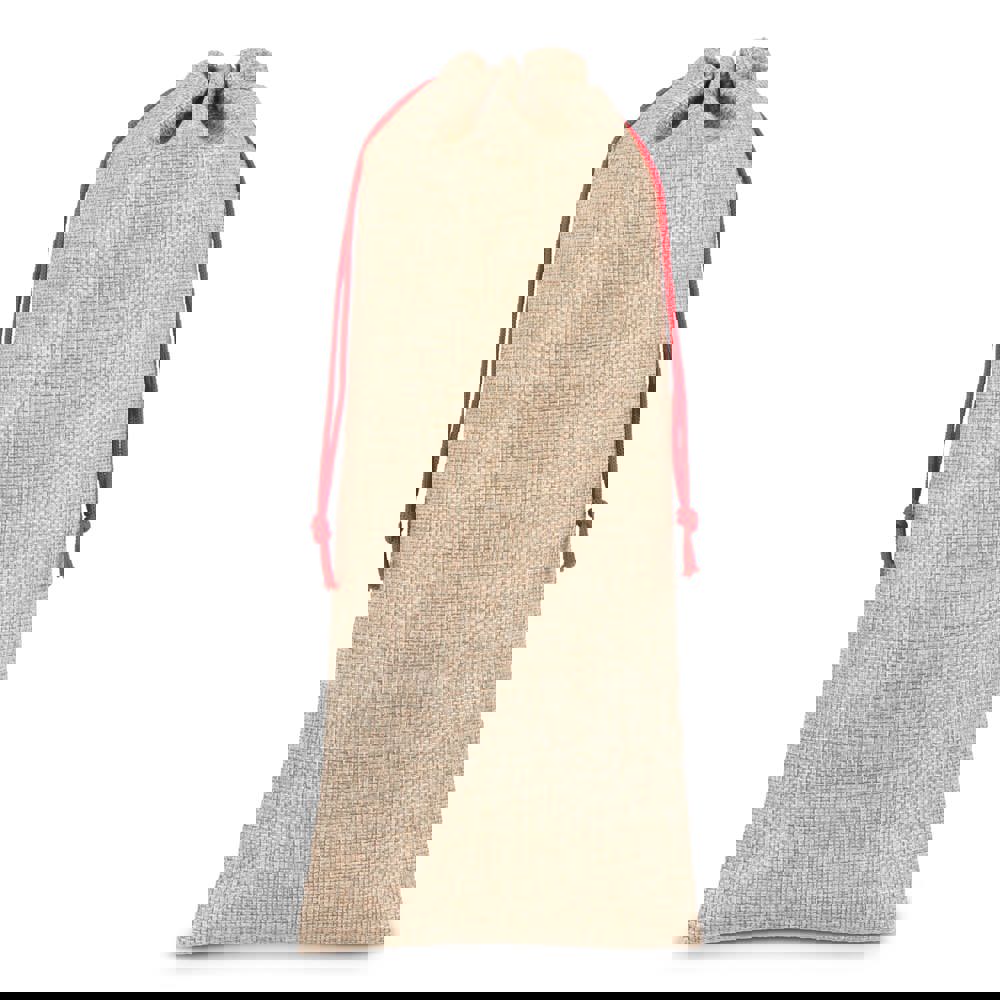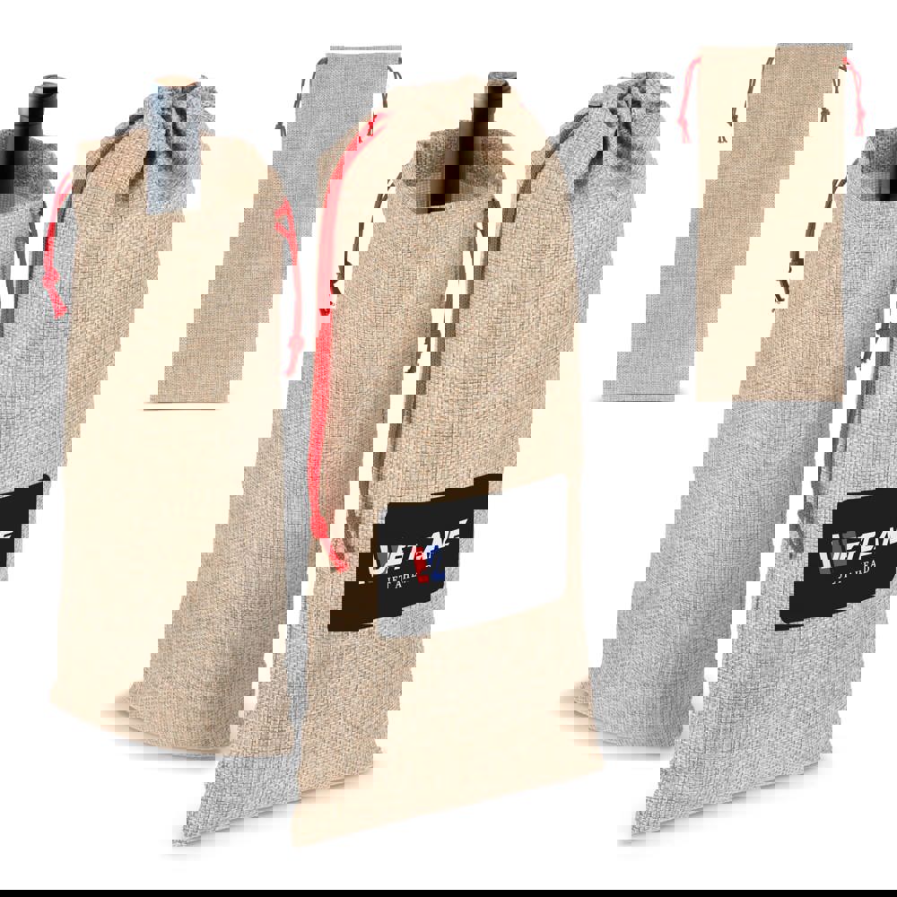 Präsentieren Sie Ihre Lieblingsflasche stilvoll mit diesem eleganten Flaschenetui im Jute-Stil. Er ist haltbar und wiederverwendbar und eignet sich perfekt, um Wein- oder Schnapsflaschen zu verschenken und ihnen einen Hauch von rustikalem Charme zu verleihen.